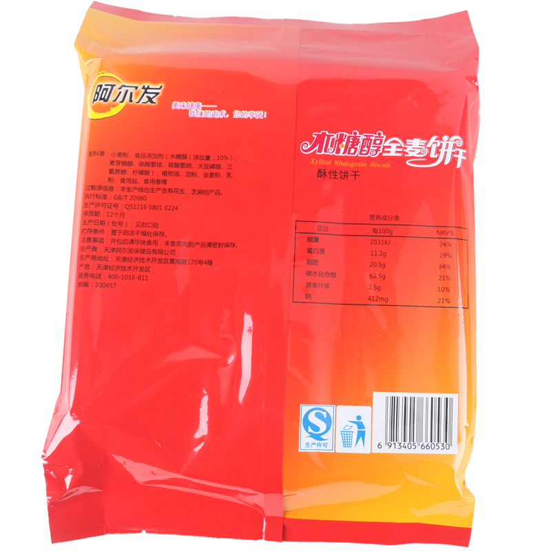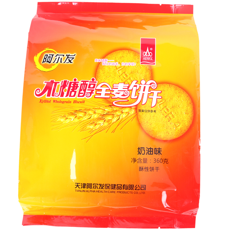 Tianjin Alfa Whole-wheat Biscuit Cream Taste 360g Meal Cookies No Cane Sugar Xylitol No Sugar Food Shop
