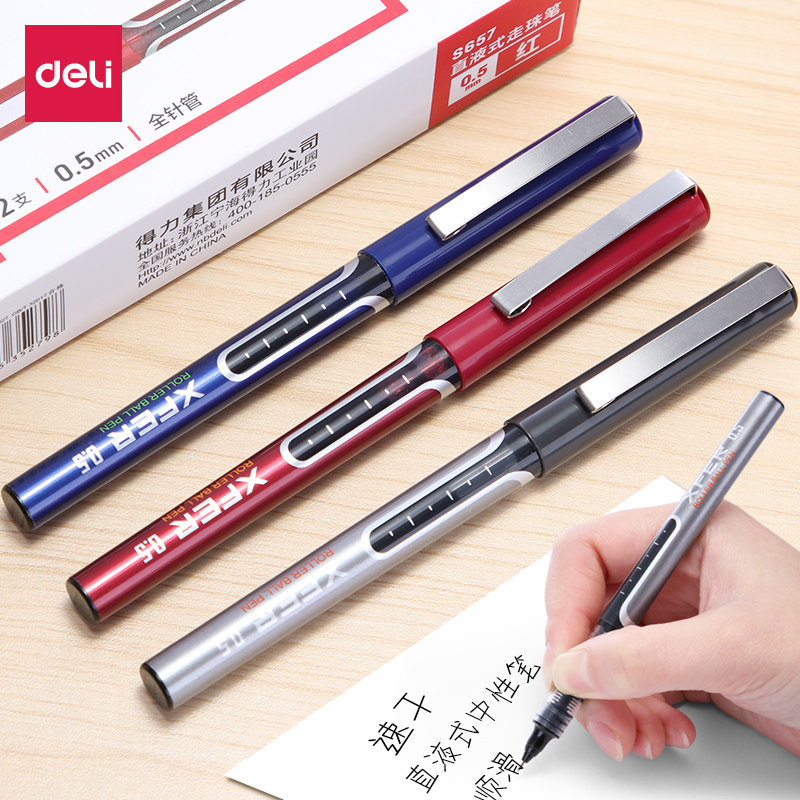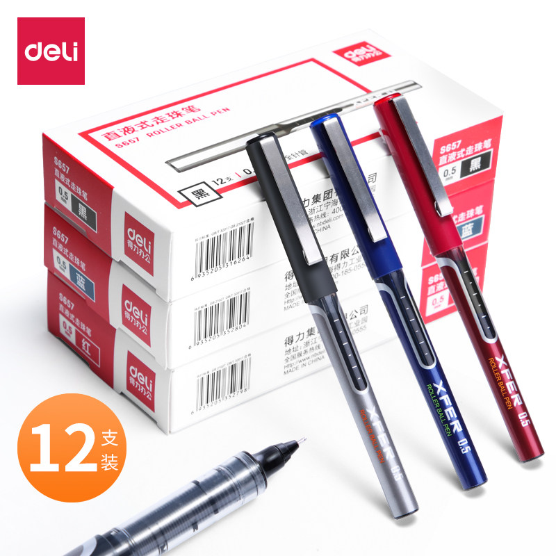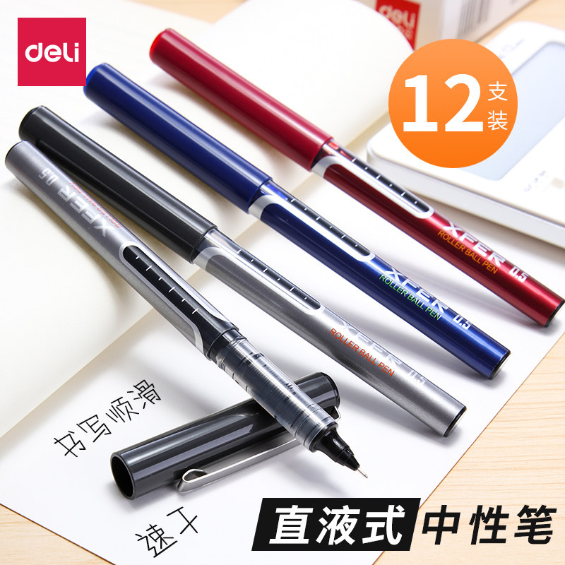 Powerful quick-drying straight liquid ballpoint pen needle tube head gel pen 0 5mm needle tube type black student with red pen carbon signature ballpoint pen water-based bullet head student examination special black pen