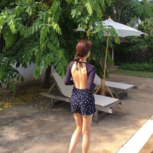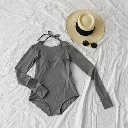 Korean bathing suit small chest sexy long sleeve belly cover thin big chest conservative swimsuit women's one-piece hot spring swimsuit sunscreen