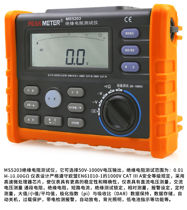 Huayi MS5203 electronic rocking meter 1000V digital insulation resistance test meter aumeter with storage