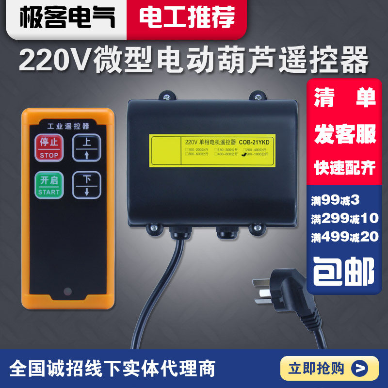 220V direct control remote control three-phase motor forward and reverse hoist winch electric hoist lift remote control
