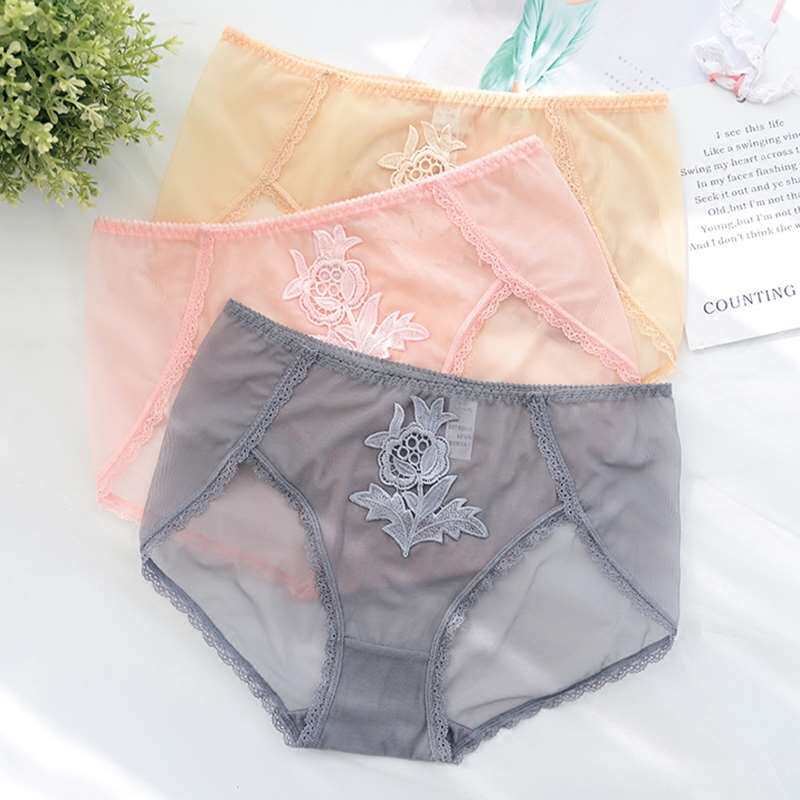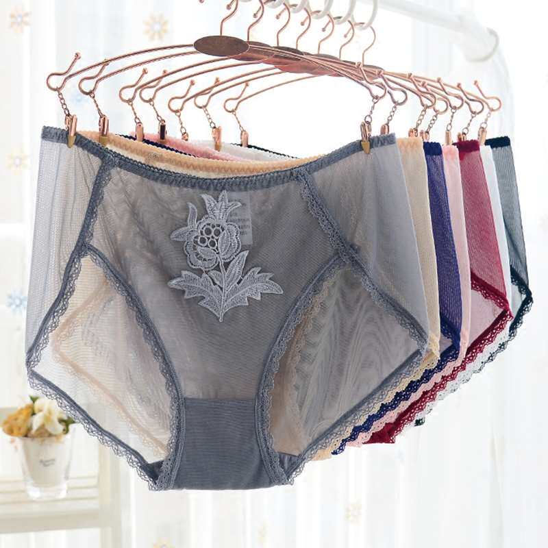 Manifin ultra-thin underwear women's lace sexy mid-waist seamless butt-lifting summer thin section breathable ice silk ladies triangle