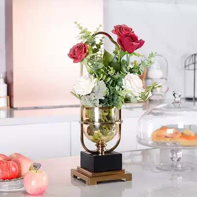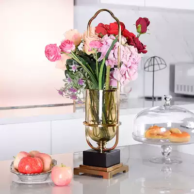 Creative European Vase ornaments glass tea color table luxury soft decoration home living room simulation flower arrangement