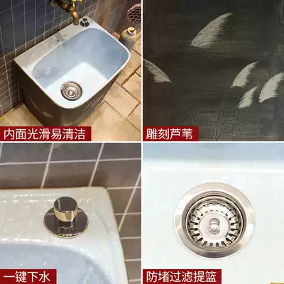 Jingyan black retro Chinese art mop pool household balcony dressing room antique ceramic mop pool