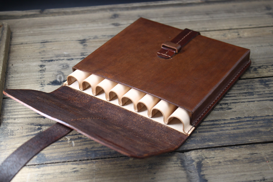 Pastoral handmade custom leather with multi-load luxury cow leather pen bag Tannic Leather Leather Head Layer Cow Leather pen Box pen bag