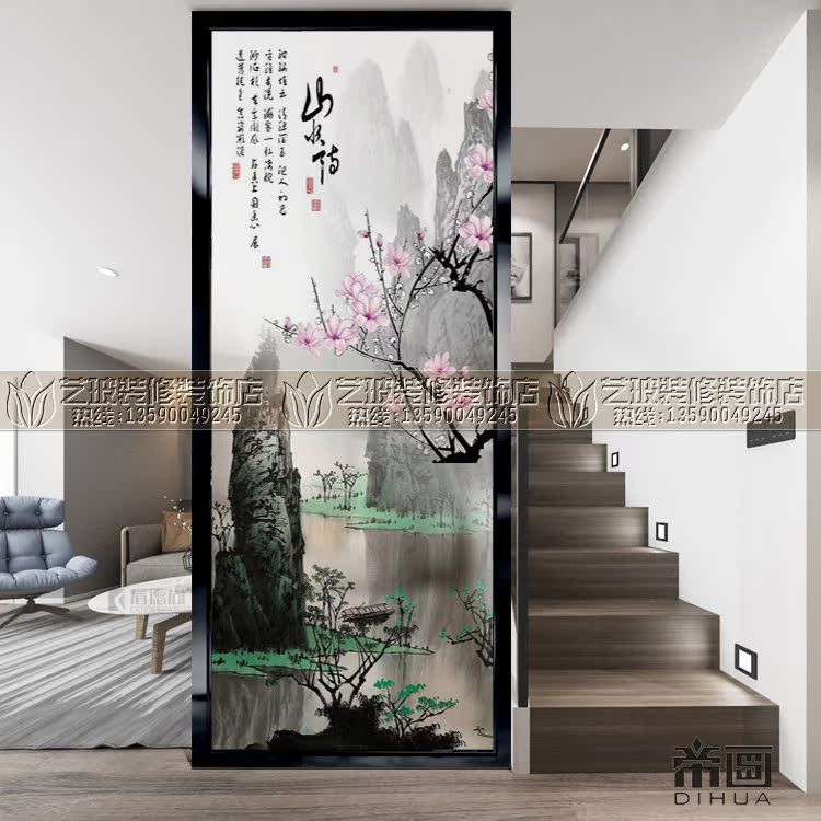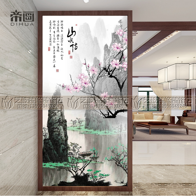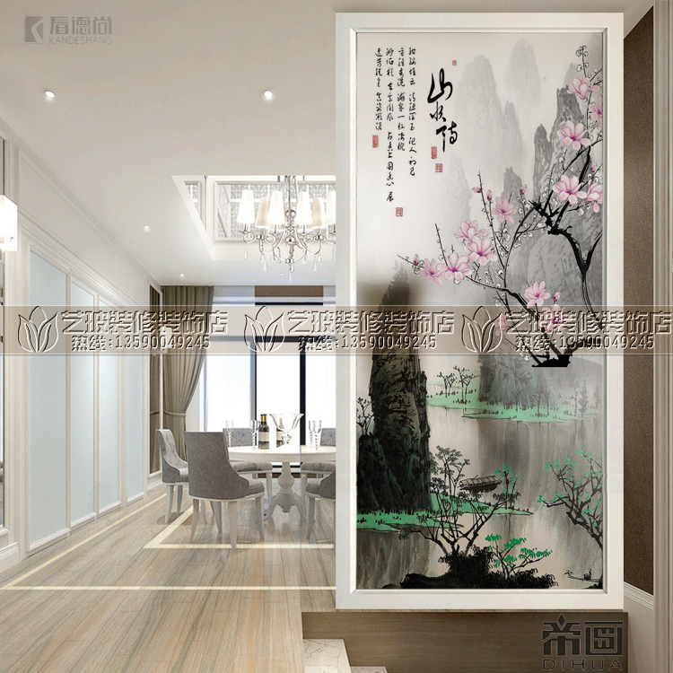 Art Glass Screen Partition Xuanguan Living room Background wall light transmission Double face sculpted Flower Crafts Yoorchid