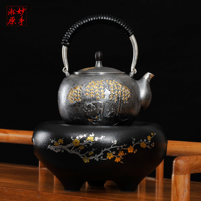 Inexplicate Sung original silver pot pure silver 9999 burnt kettle pure handmade one silver teapot for home cooking kettle tea set