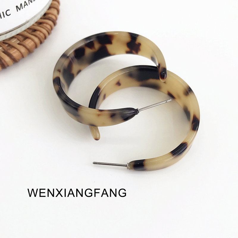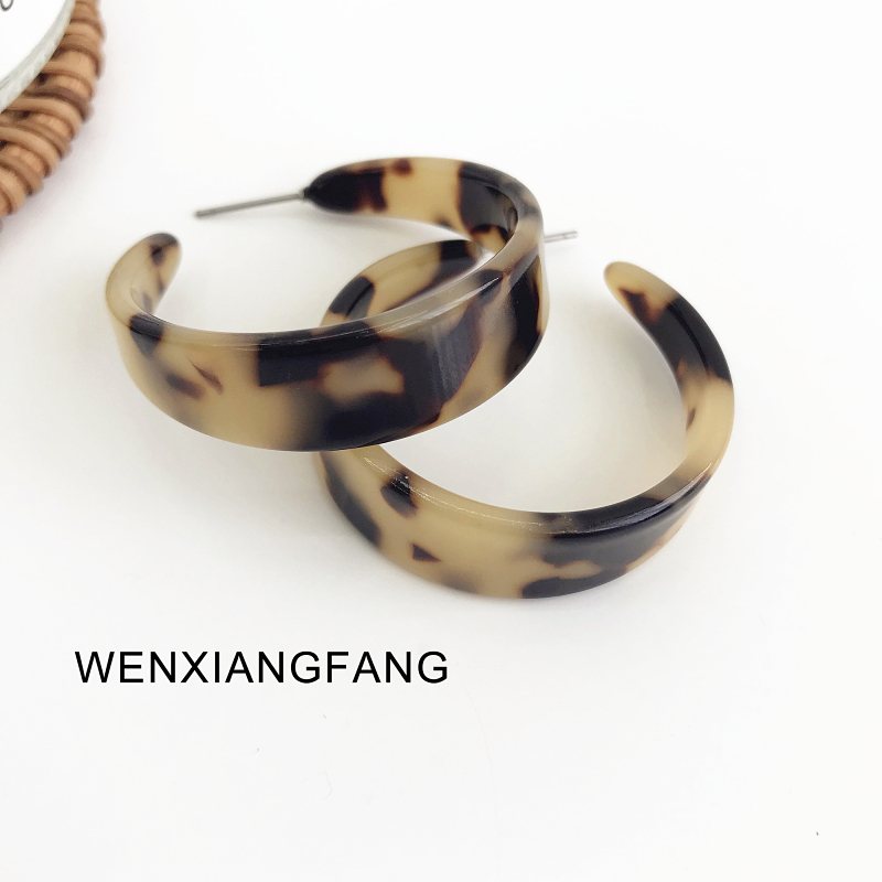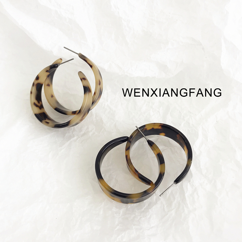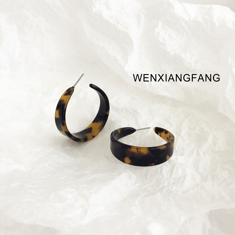 chic Korean ins niche retro minimalist net red with the same tortoiseshell color cold wind semicircle earrings BAO WEN ear needles