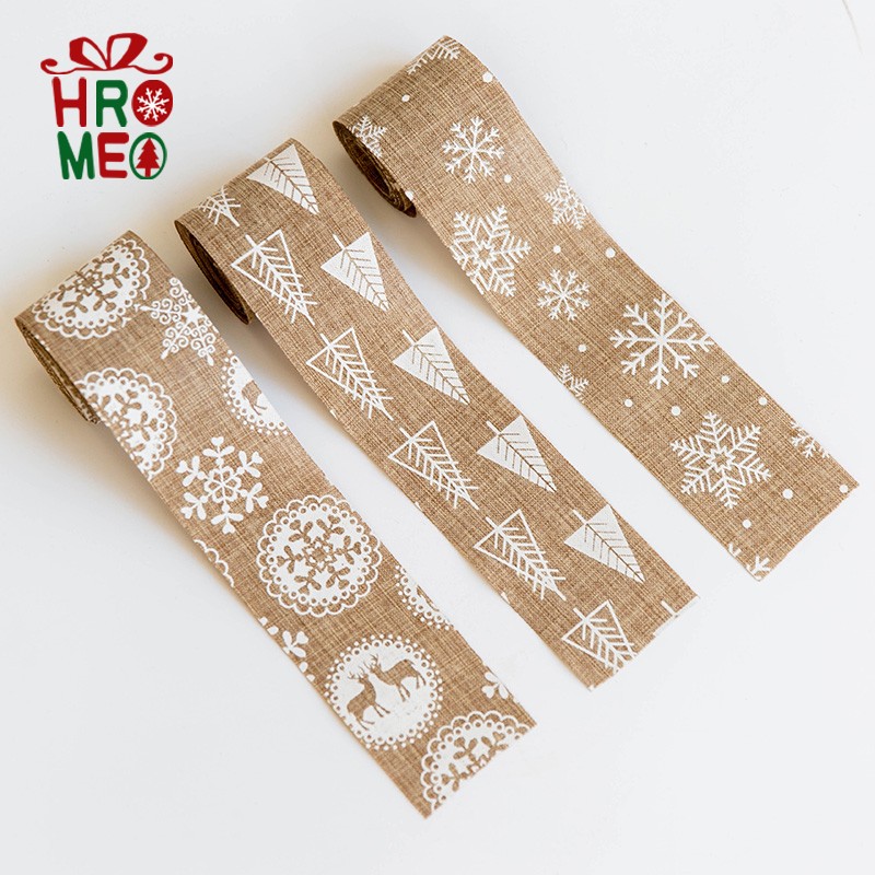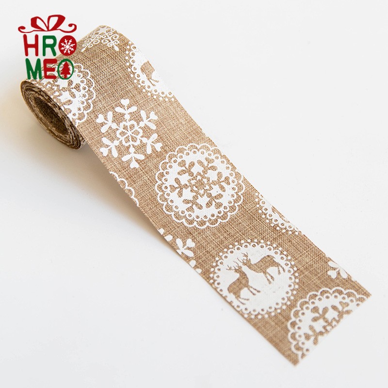 Hromeo Nordic 2 m printed hemp cloth DIY butterfly knot webbing with gift wrapping with colored with Christmas tree decorations-Taobao