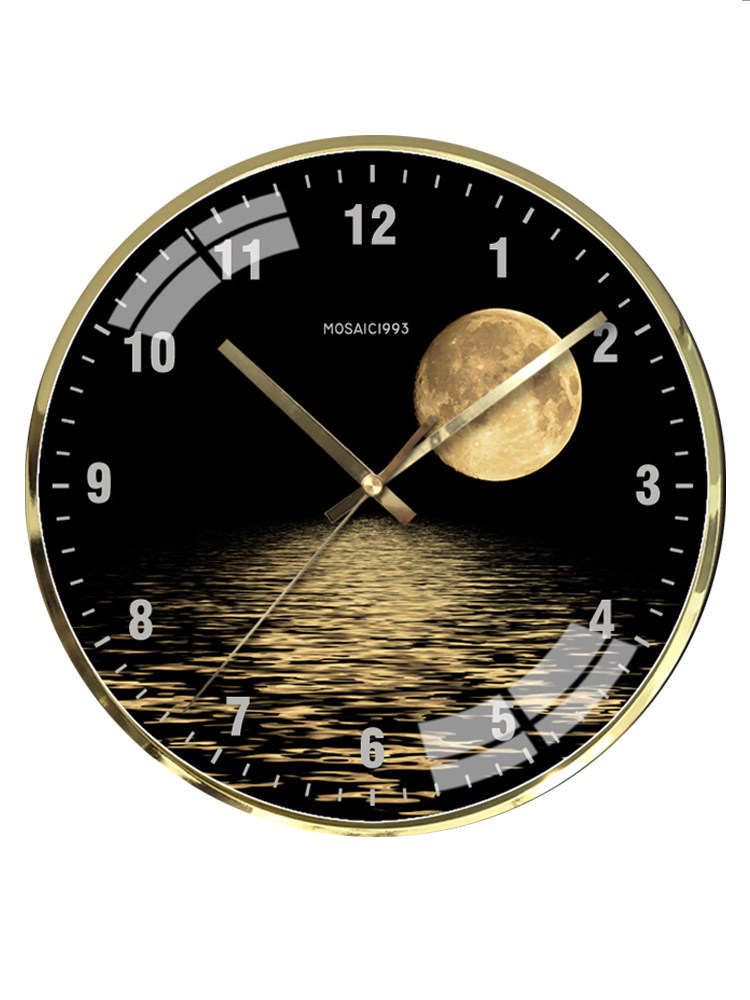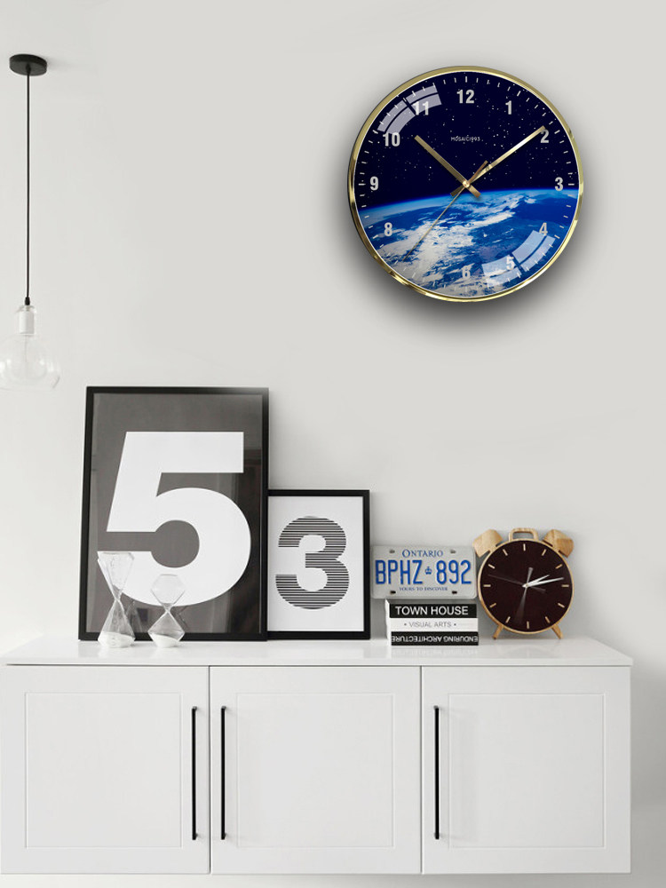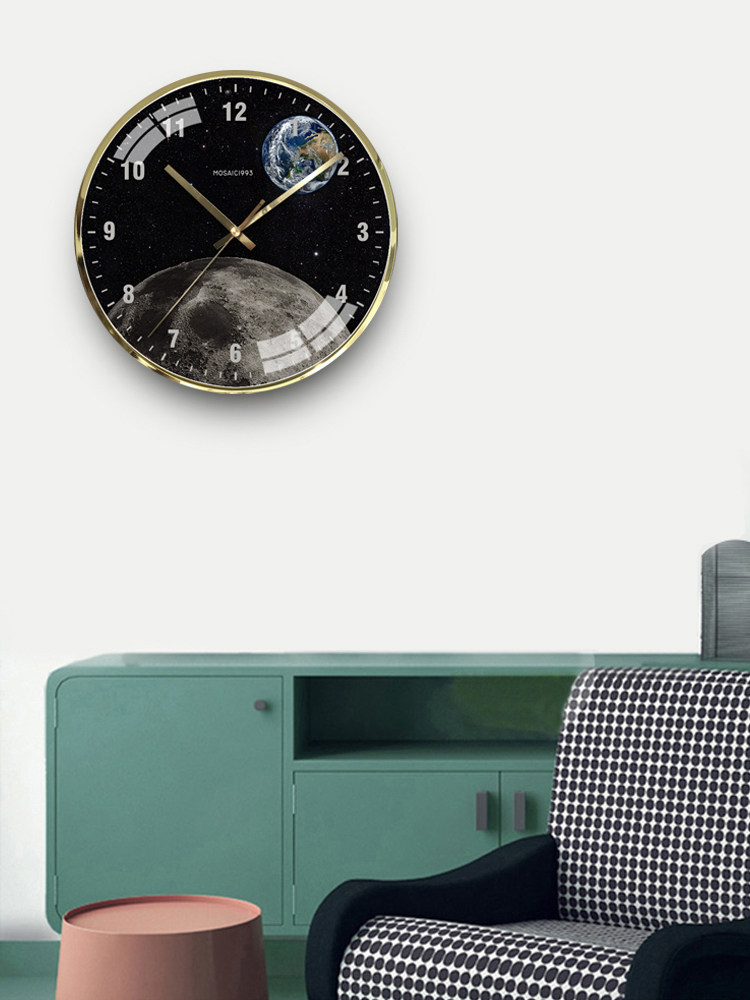 Nordic Postmodern Black Personality Fashion Simple Moon Earth Ultra Quiet 12 and 14 Inch Quartz Wall Clock