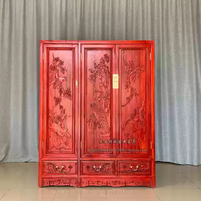 New Chinese camphor wood wardrobe large-capacity full camphor wood wardrobe three-door storage cabinet antique carved storage cabinet customization