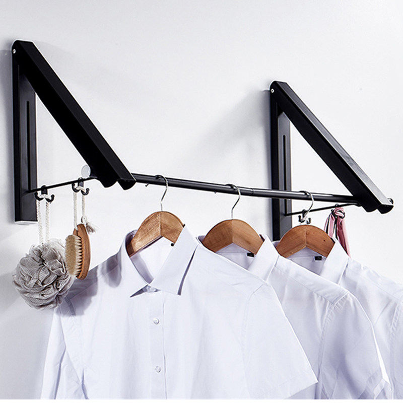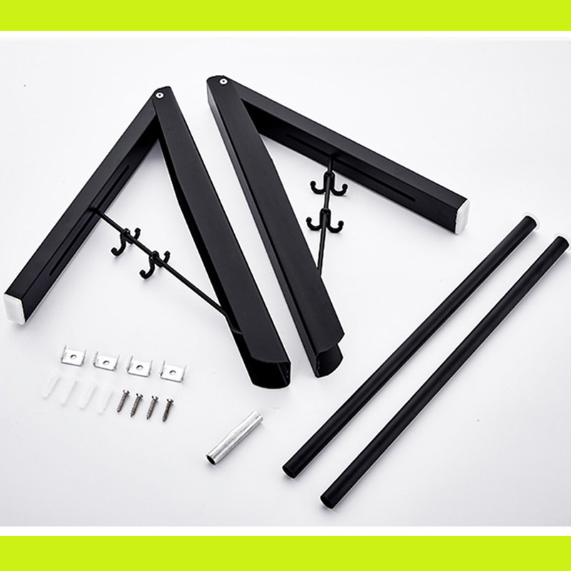 Black Space aluminum Invisible clothes rack Hotel Hangers Retractable wall Bathroom Balcony Folding clothes rack