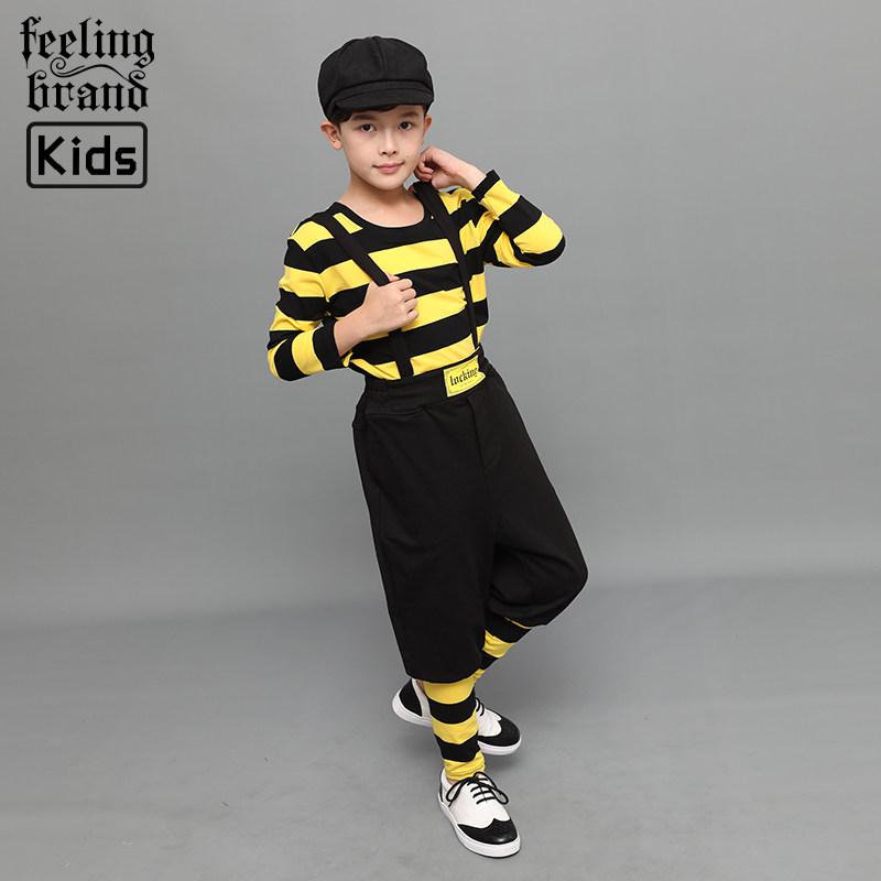 Toddler lock dance blocking street dance dress rehearsal for striped blouses The small bee holding baby bag pants suit jumps up