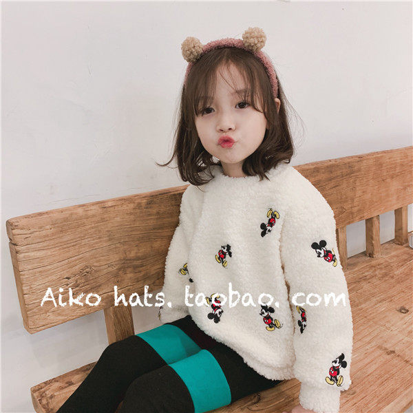 AI K O A C C A Korean version of the autumn and winter children's hair decoration lamb suede double ball Coloured hair hoop