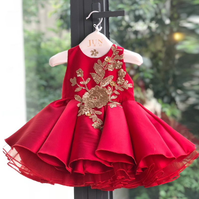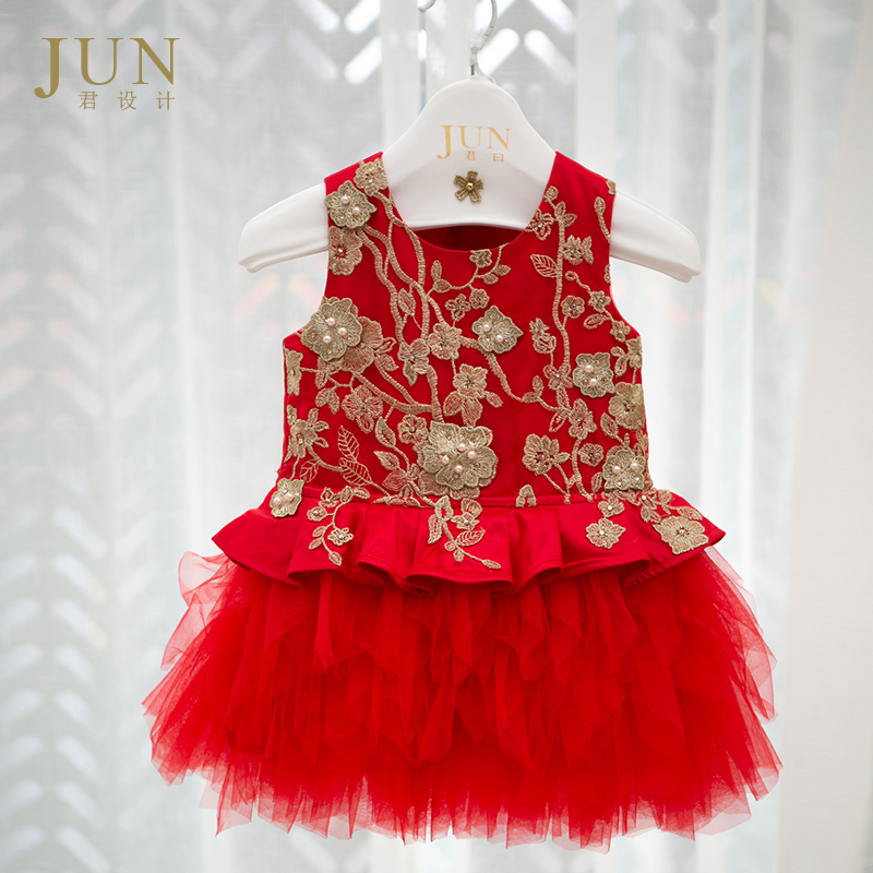 Jun design baby high-end one-year-old dress girl baby tutu skirt birthday flower girl foreign style wedding dress princess dress