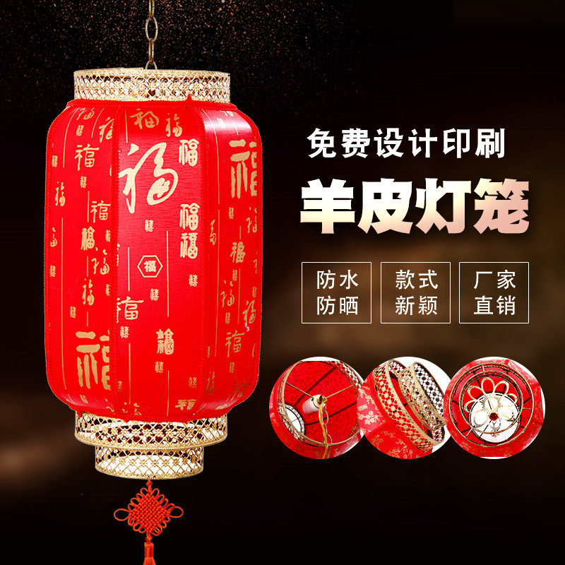 Outdoor waterproof sheep skin antique lantern Chinese hotel decorated big red lantern New Year National Day winter melon advertising lantern