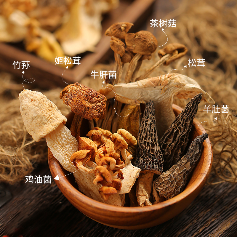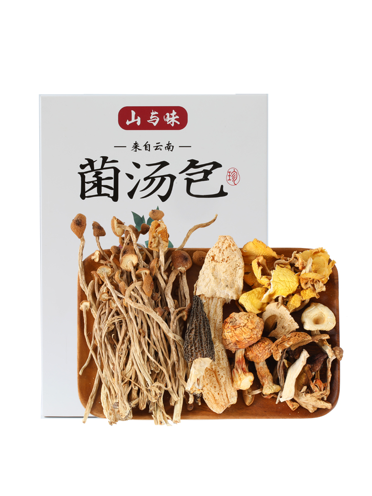 Mountain and taste mushroom soup bag 100g Eight-taste wild bacteria dried edible fungus Morel mushroom Matsutake soup bag Yunnan specialty