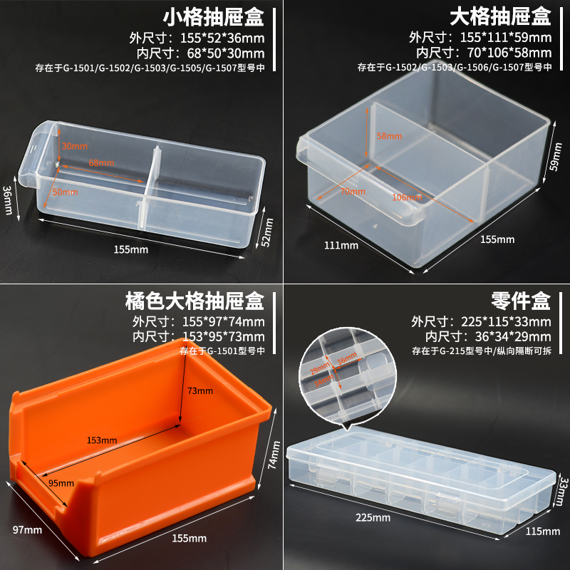 Drawer PARTS BOX ELECTRONIC COMPONENTS STORAGE CABINET LEO HIGH CLASSIFICATION POLYGBOX PLASTIC FIVE GOLD TOOLS DIVIDED BOXES