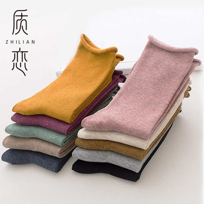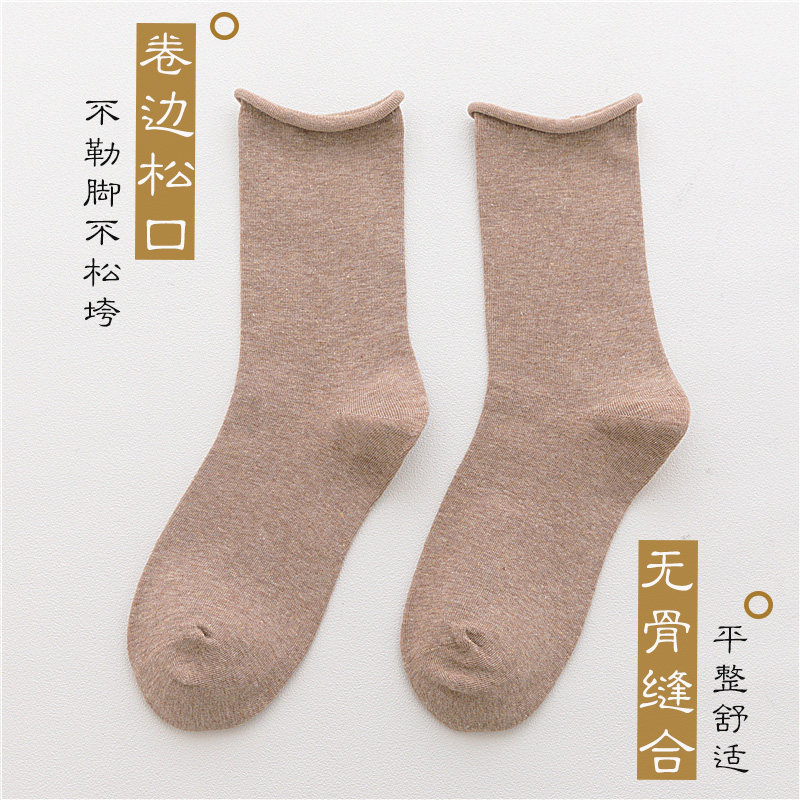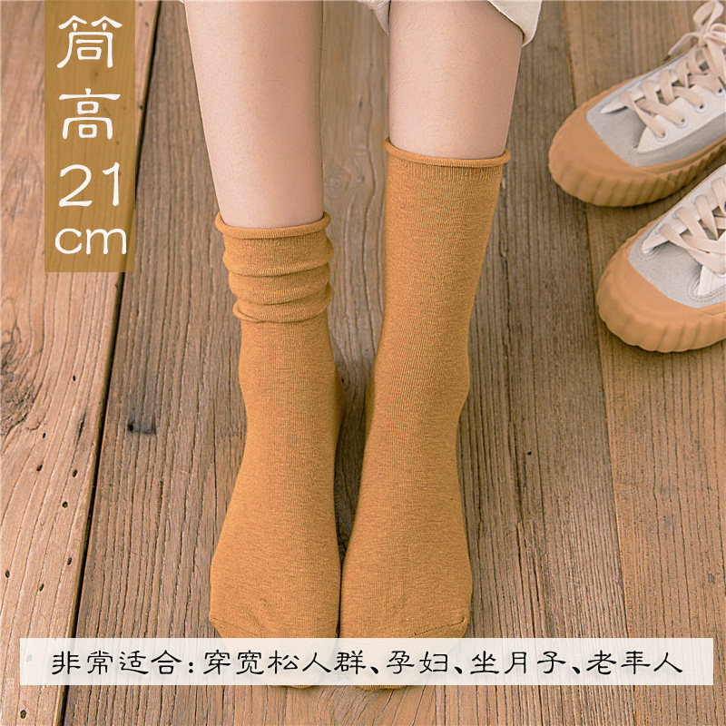 Rolled loose socks women's autumn and winter mid-tube socks loose mouth pile socks boneless Japanese women's socks Korean all-match stockings trendy