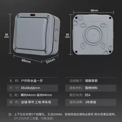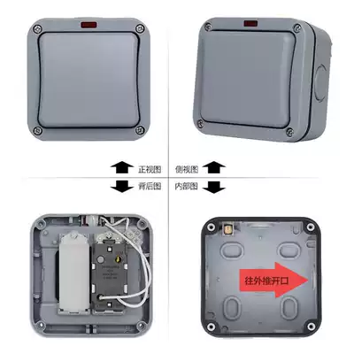 Outdoor waterproof switch Outdoor garden Indoor bathroom site single open double cut with indicator light Surface mounted rainproof IP66