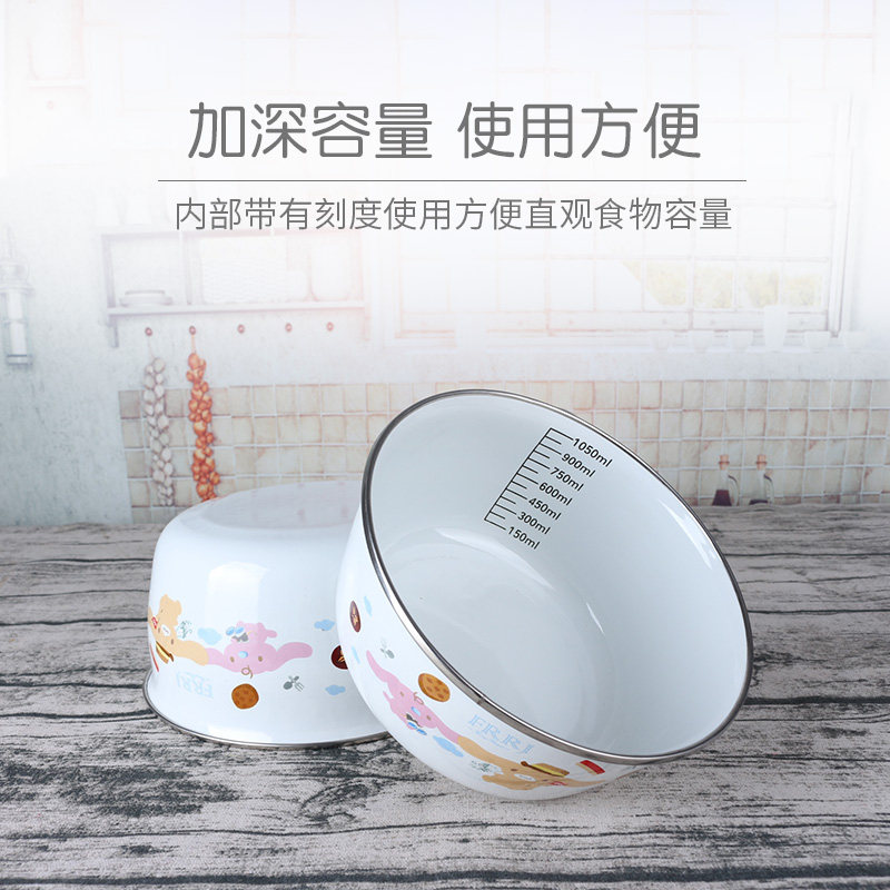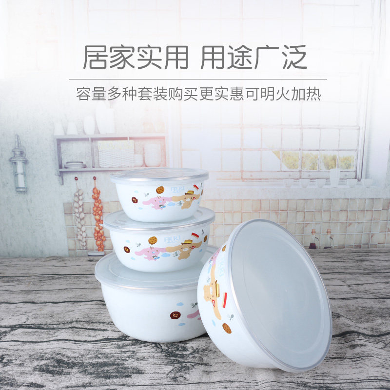 Special Thick Enamel Bowl with lid sealed suit cover Bowl Fresh bowl Nostalgic Vegetable Bowl Four Pieces Old enamel Enamel Porcelain Bowl