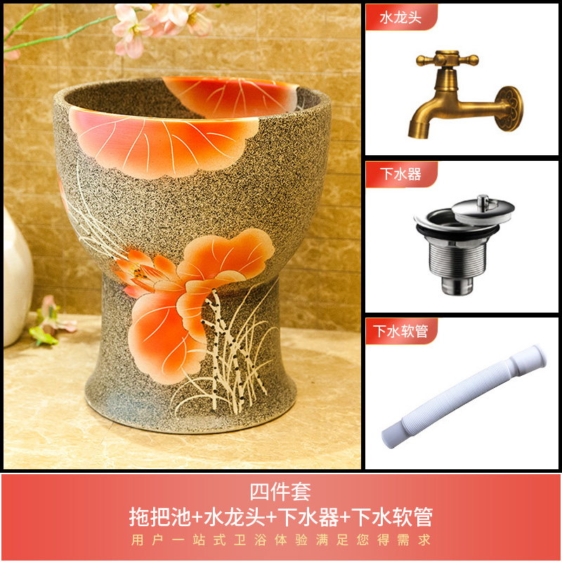 Mop Pool Balcony Makeup Room Art Mop Pool One-piece Retro Ceramic Mop Basin Big floor Type 35cm