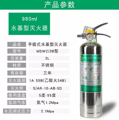 Beijing Jiujiyuko 2L household car water-based fire extinguisher stainless steel water-based fire extinguisher Fire Certification