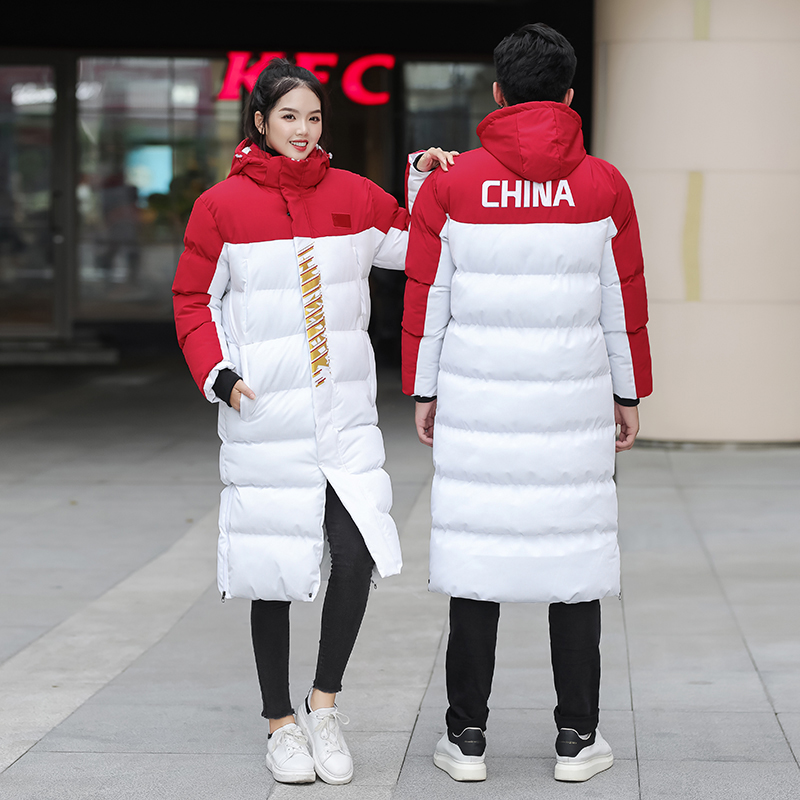 Winter sports coat Men's and women's children's long version over-the-knee taekwondo training uniform Sports student down cotton coat customization