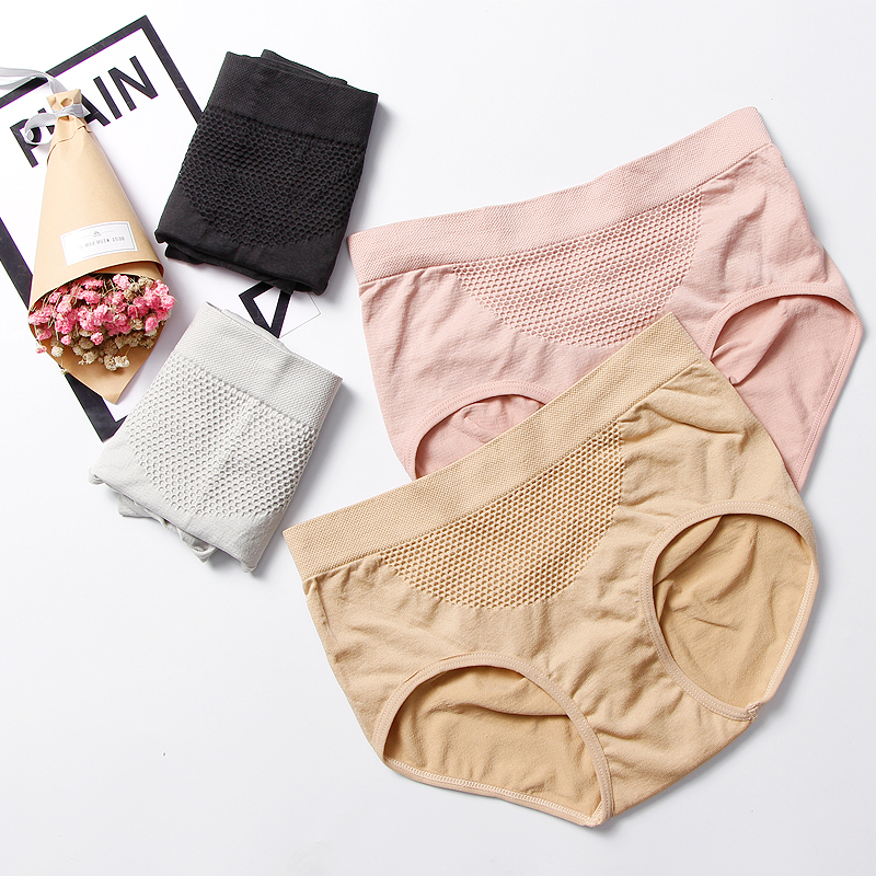 4-pack Japanese Honeycomb Warm Palace Belly Lift Buttocks Hip Panties Women's Cotton Crotch Wrap Hips Seamless Mid-Rise Briefs