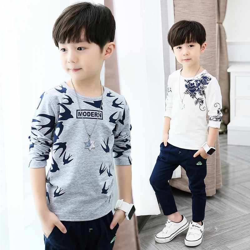 Boy Spring Autumn Clothing 2021 New CUHK Child Pure Cotton Long Sleeve T Hit Bottom Blouse T-shirt Lower Tide Body T-shirt