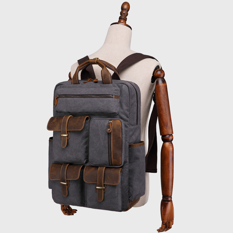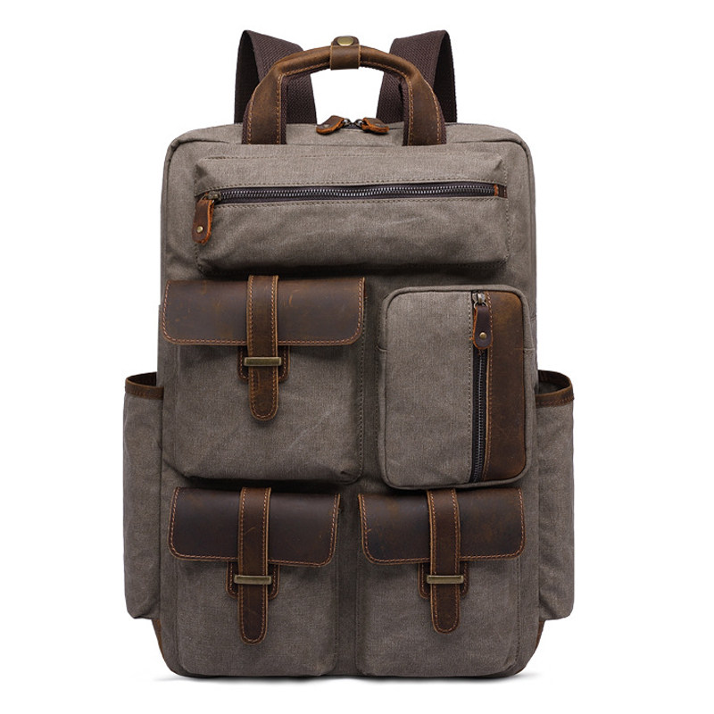Chiguxi men's package of European and American fashion outdoor travel package retro canvas bag multipocket double shoulder backpack computer pack
