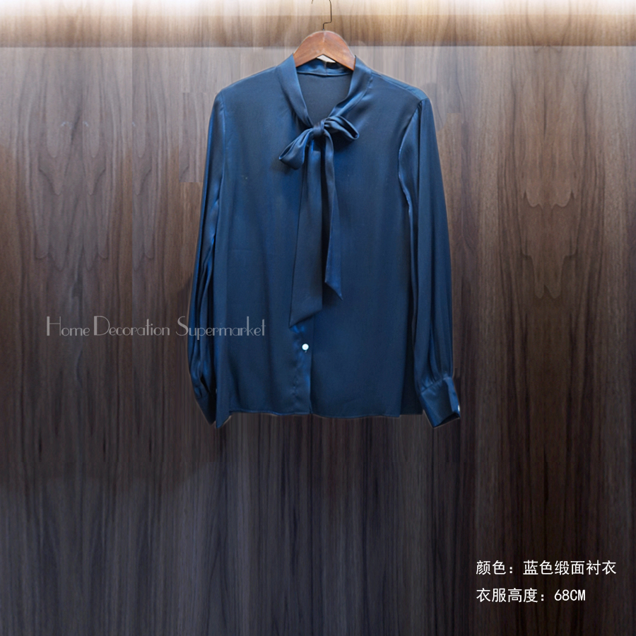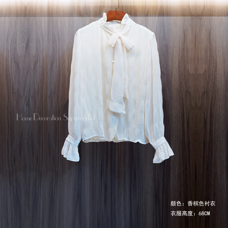 White Fabric Blue Line Blue Sain Blue Little Blue Lace Shirt with Blue Lace Shirt Little Volume Shirt Little Flower Shirt Champagne Metal Clothing Blue Lace Shirt