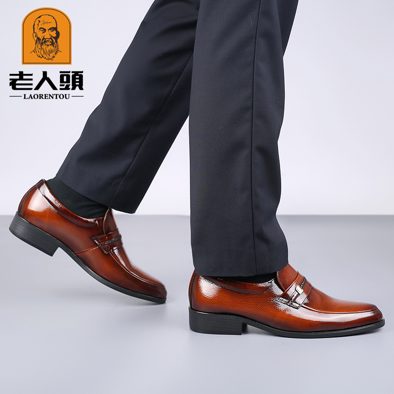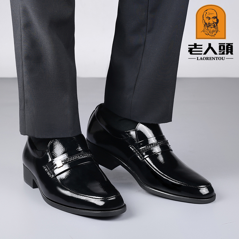 Old man's scalp shoes men's leather business formal shoes men's all-match bright leather with suits casual shoes pointed toe wedding shoes