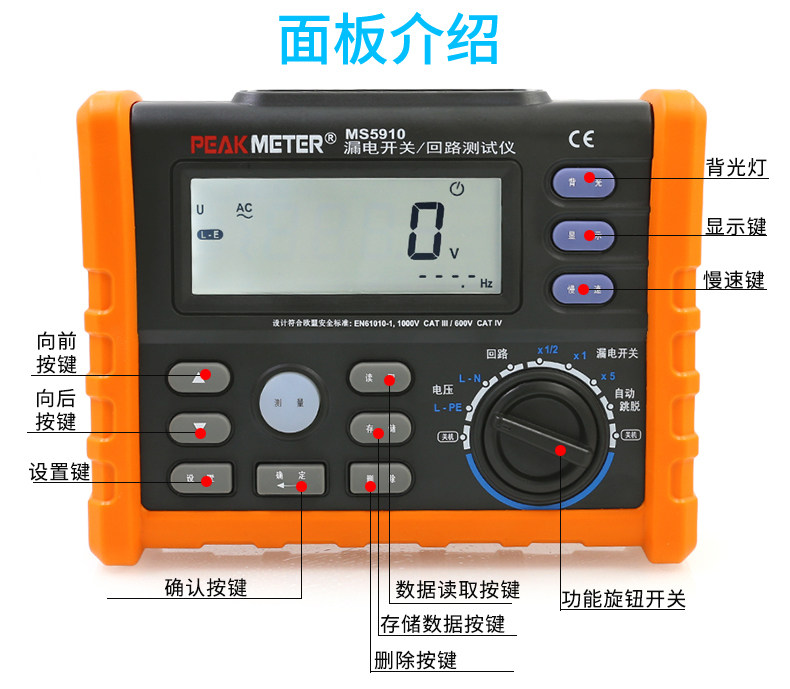 Huayi MS5910 Leakage Switch Tester Leakage Protector Electrician Overhaul Loop Loop Resistance Detector