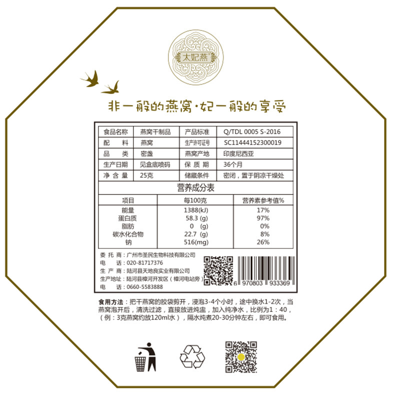 Too Princess Yenmian 25 gr anise gift boxed Indonesian imported anadromous Yan nest to pick up pregnant pregnant woman nourishing products