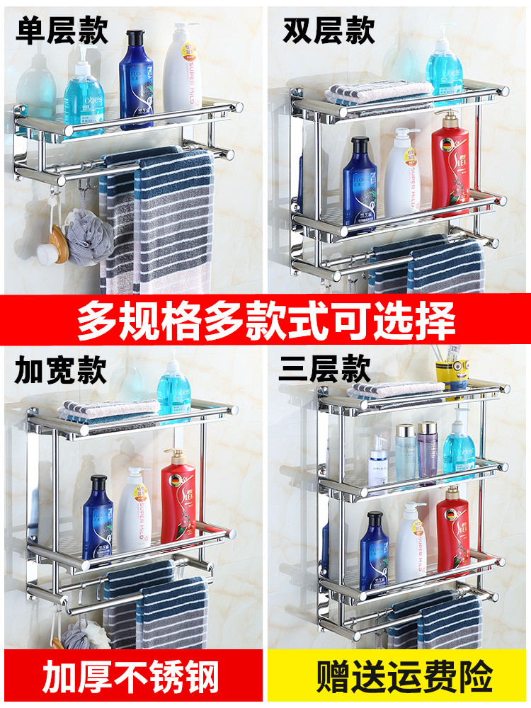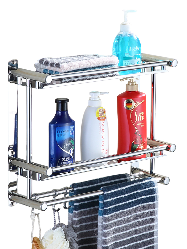 Makeup Room Hair Towel Rack Stainless Steel Free Punch Bathroom Shelve 2 Floors 3 Floors Toilet Bathroom Wall-mounted Bath Towels