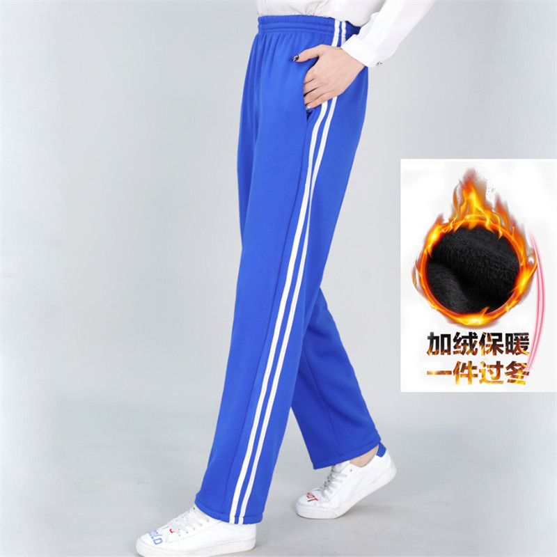 Gush school uniform pants male one bar white edge plus suede thickened winter elementary school junior high school Two white bar sports pants