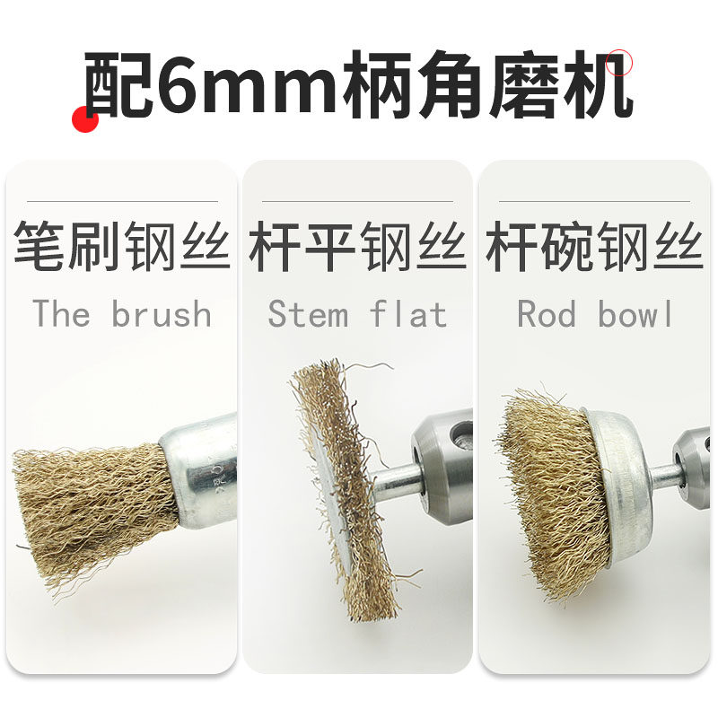 Steel wire pen brush 6 * 10mm bar flat 6 * 38mm steel wire pen brush 6 * 12mm bar flat 6 * 50mm steel wire pen brush 6 * 16mm bar flat 6 * 65mm