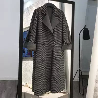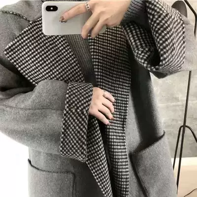 South Korea 2021 winter new medium and long version Hepburn style double-sided cashmere coat plaid popular woolen coat female thick