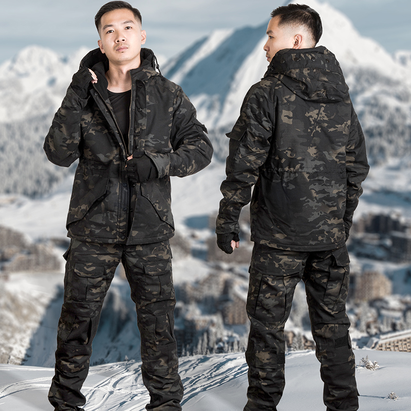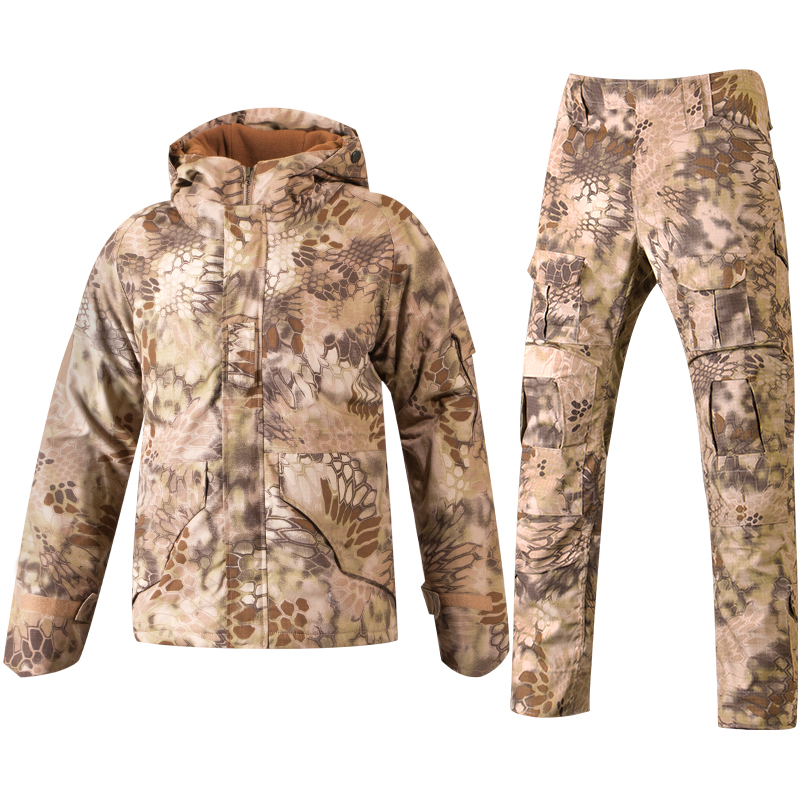 Military meme python camouflate submachine clothing suit men and women winter outdoor plus suede thickened jacket warm cotton clothes mountaineering clothing