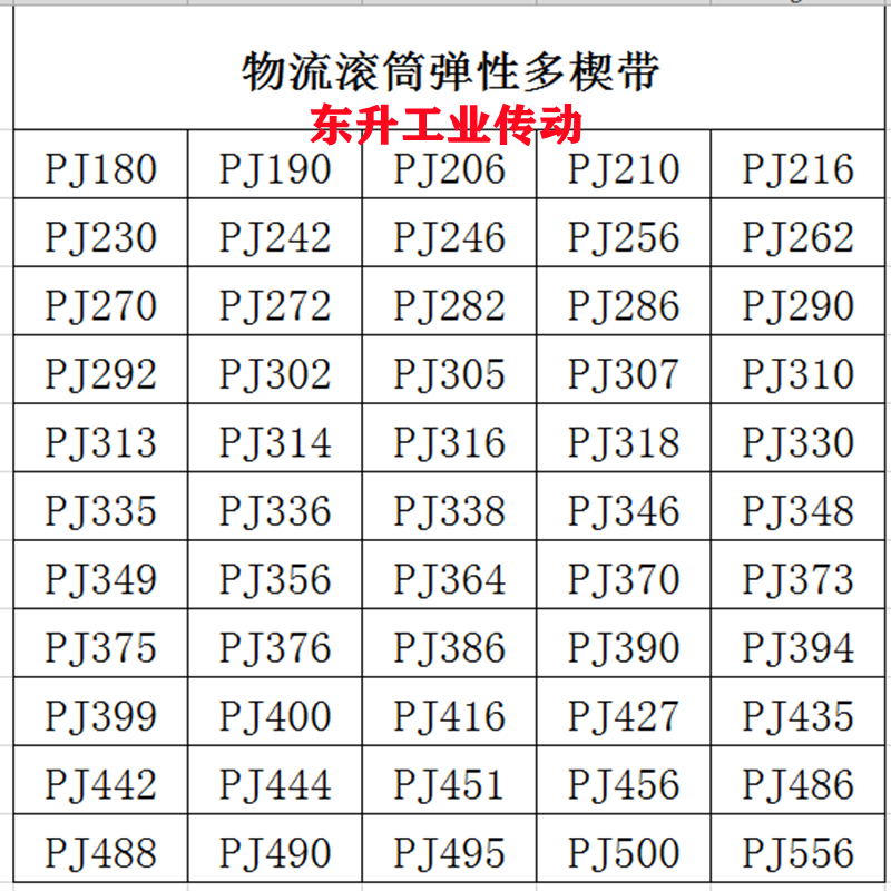 Multi-wedge with EPJ282 PJ310 PJ310 PJ356 PJ364 PJ370 PJ370 PJ373 PJ373 roller elastic strap