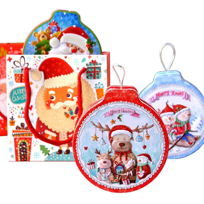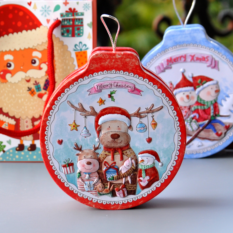 Christmas jar bell gift box cartoon cover round candy cartridge packaging box small iron box candy box
