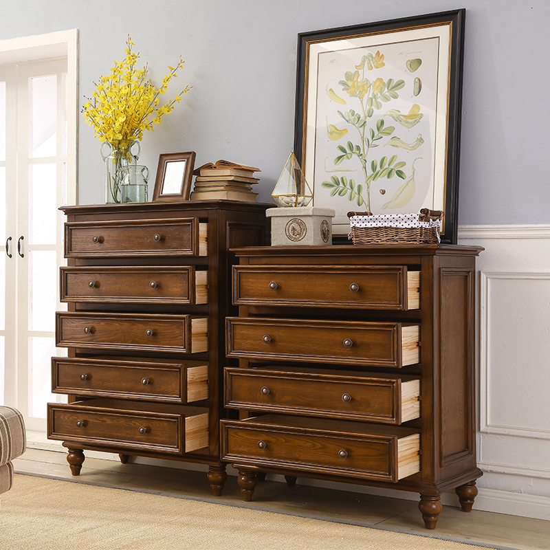 American-style solid wood bucket storage cabinet ash five buckets and six drawers country bedroom seventy-nine light luxury simple drawers into the home