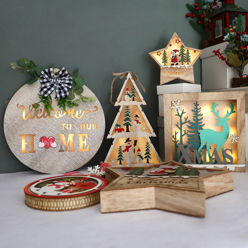 Christmas Decorations Gift Christmas Tree Lights Led Colorful Lights Seniors Snowman Woody Stars Home Creative Pendulum