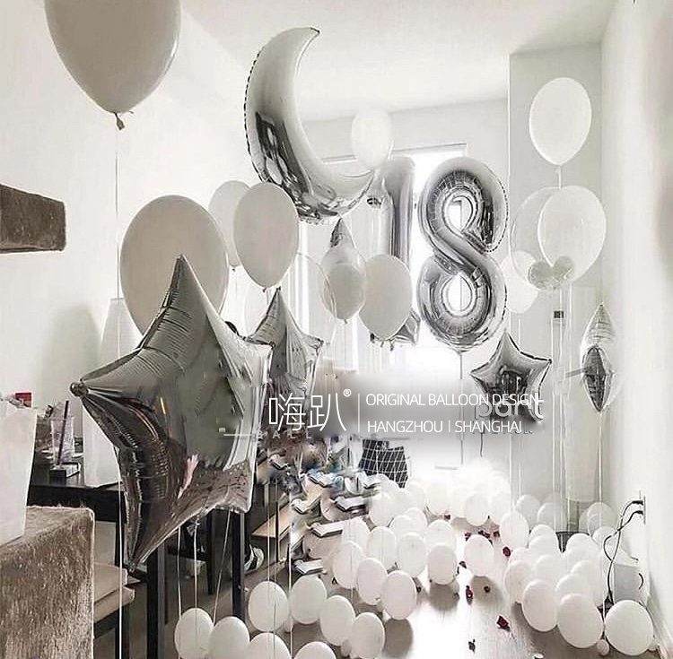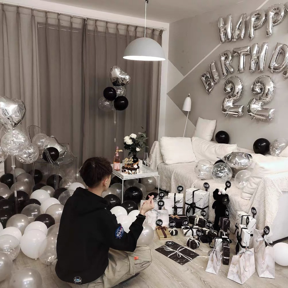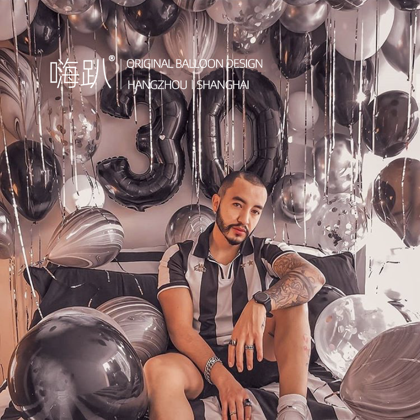 ins wind adult birthday decoration scene placement balloon white romantic table white tennis red creative party background wall