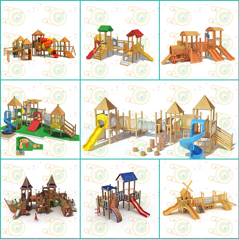 Large outdoor park kindergarten wooden slide multi-functional wooden combination drilling hole slide to expand climbing rock climbing