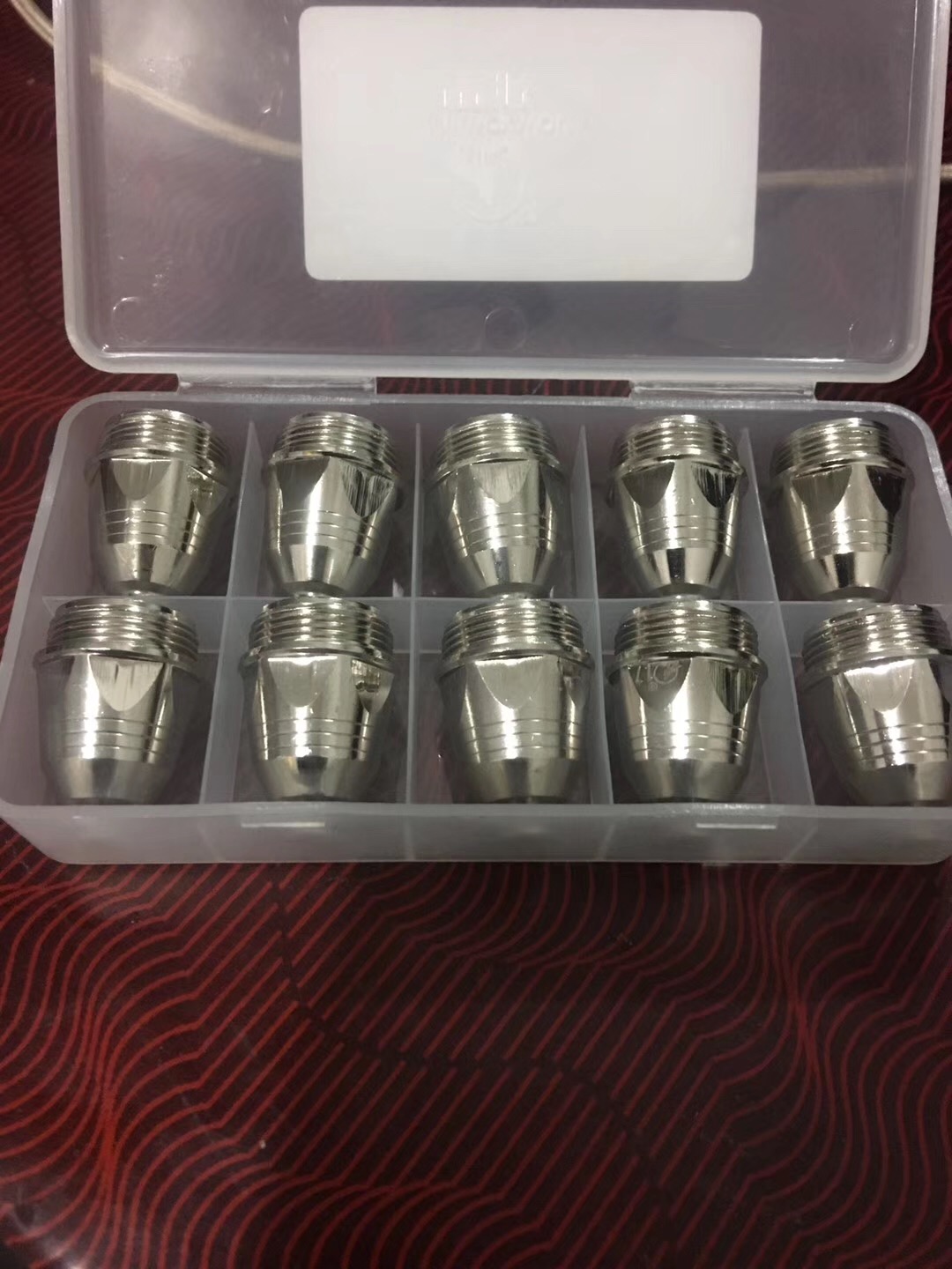 A set of ordinary electrode nozzles, a set of domestic hafnium wire electrode nozzles, an upgraded version of imported hafnium wire electrode nozzles, a set of Tuhao gold electrode nozzles, a set of individual gun head ceramic sets of black wolf electrode nozzles