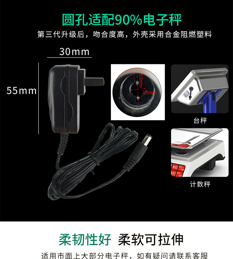 Electronic scale charger 6V 500mA Folding table scale 4V electronic scale power cord Universal commercial round hole