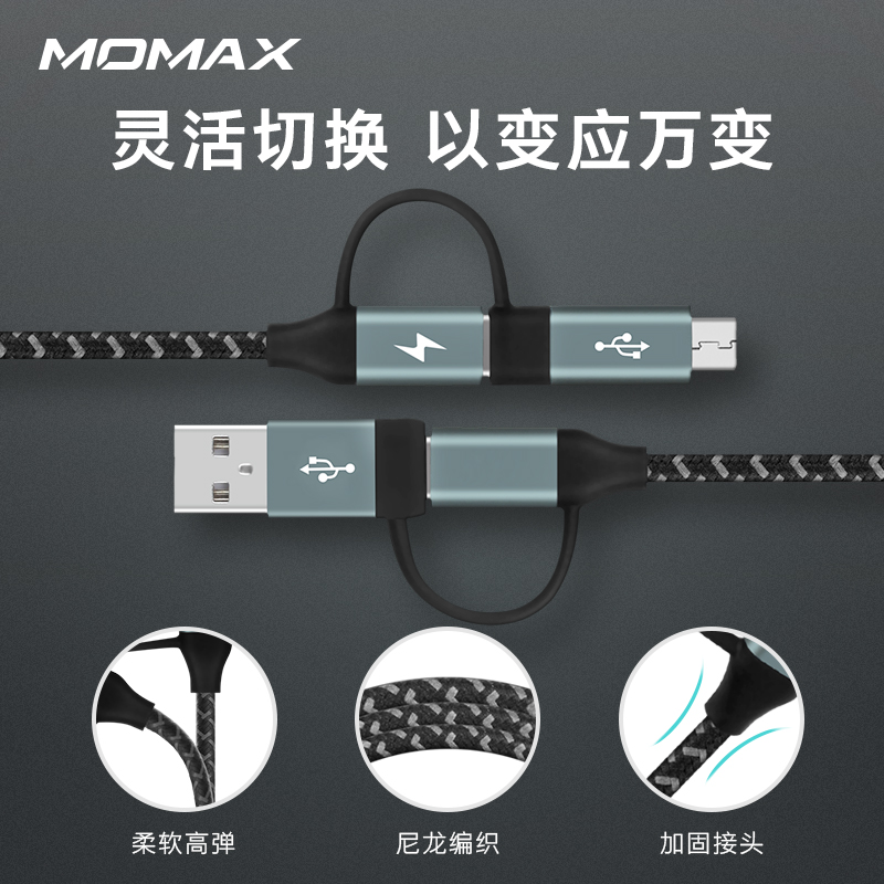 Momax Momis braided 4-in-1 data cable USB Type-C to Type-C Micro3A high current ipadpro Android multi-function charging cable hand