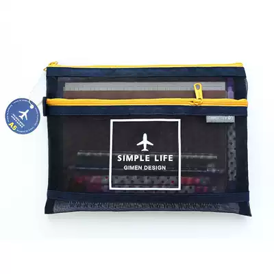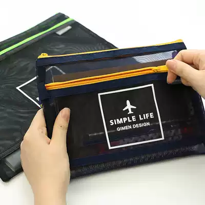 Giant door stationery A5 A4 transparent grid pen bag female simple college students with small fresh creative mesh double zipper bag business office exam pen bag men and women large capacity stationery bag